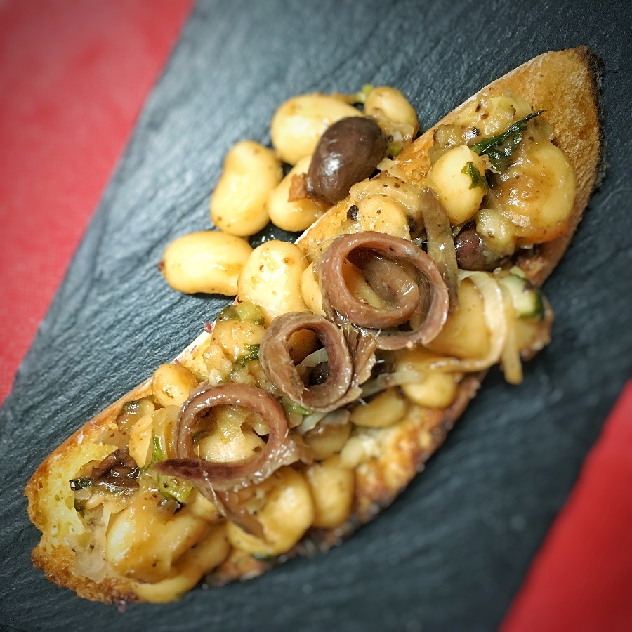 Judías (Alubias) blancas con anchoas y aceitunas negras